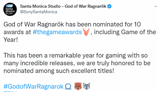 今日,《战神:诸神黄昏》开发商圣塔莫尼卡工作室发文致谢TGA提名,“很高兴《战神:诸神黄昏》入选包括年度游戏在内的共十个奖项提名,今年对于游戏来说是非凡的一年,很荣幸能在众多优秀作品中拿到提名。”圣塔莫尼卡工作室还提供了投票地址,感兴趣的玩家可以为自己喜欢的游戏投出宝贵一票。