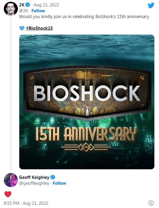 在15周年推特下方,科隆游戏展主持人Geoff Keighley与2K官方频频互动,几乎已经承认了会有消息在科隆游戏展上公布。
