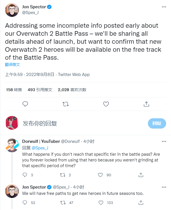 暴雪副总裁Jon Spector证实:《守望先锋》“归来”新英雄获取手段从通行证免费奖励解锁!