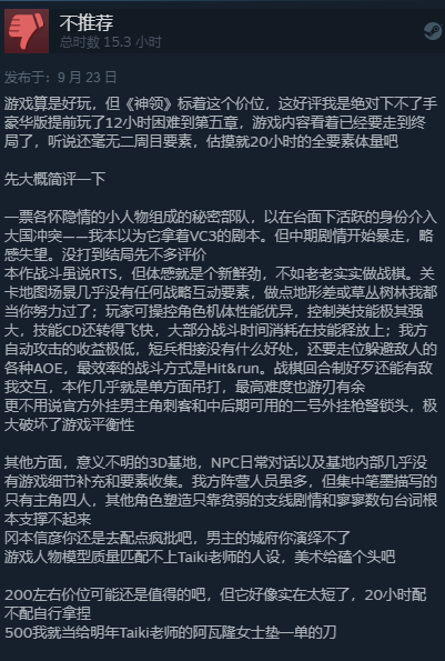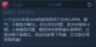 给出差评的玩家普遍认为游戏定价过高,而且在此基础之上还内容短缺且不支持云存档,游戏更像是一款半成品: