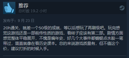 给出好评的玩家认为游戏剧情尚可,游戏性也不错,游戏美工精良等: