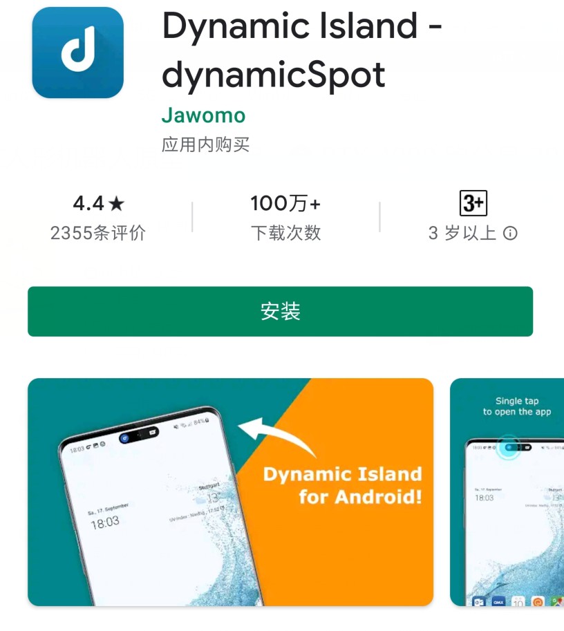 iPhone14 Pro的灵动岛设计给我们留下了深刻印象,在该功能发布后不久,一款名为“dynamicSpot”的安卓版灵动岛便上架谷歌Play Store,现在这款应用的下载量已经超过100万次。