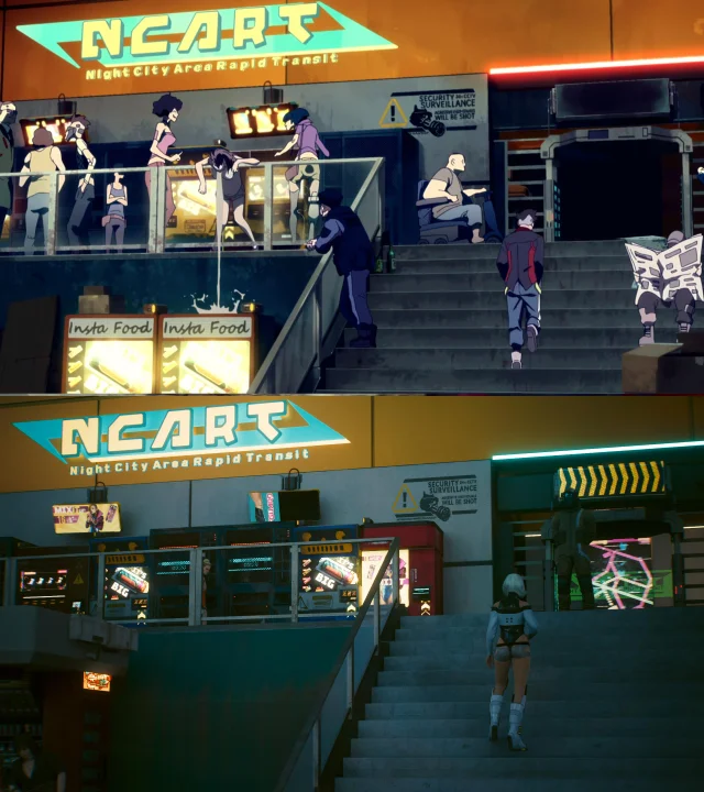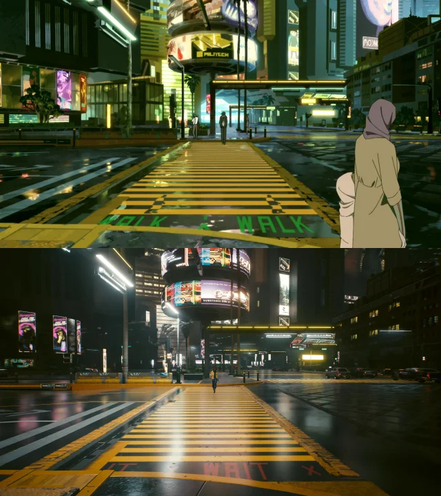 前不久,随着《边缘行者》的播出,才更新完1.6版本不久的《赛博朋克2077》再次迎来第二春。有细心的游戏玩家在游戏中找到了动画中的部分场景,可以看出动画的还原度相当之高。也有网友猜测,肯定是扳机社获得了游戏的完整3D地图,动画中的每个地点都能在游戏中找到。